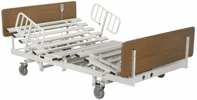 | The newest of the 3 motor fully electric hi low hospital beds with optional half and full rails. Available in Twin, Full, Queen and Dual King Sizes. | The Supernal 3 is a 3 motor hospital bed that has a very low position. Available Twin and Queensize. | 5-Motor Hospital Bed. The Tuffcare Century Hospital Bed also alows for Trendellenburg and reverse Trendellenberg. Optional Side Rails. Available 36" x 80" and 42" x 80". |
